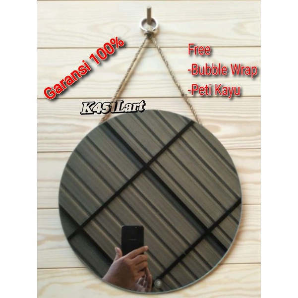 Cermin Gantung Tali Rami D30cm/Cermin dinding gantung/Cermin Wastafel